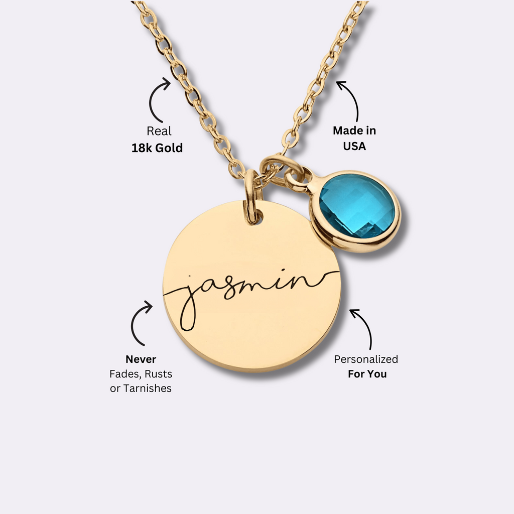 Ce magnifique collier, qui possède une longue chaîne et une touche personnelle, est parfait pour toute femme. Ce pendentif rond avec pierre de naissance de votre choix est attaché au centre du nom, lui donnant un bel effet scintillant ! Ce collier serait un excellent cadeau pour Noël, Thanksgiving, anniversaires, anniversaires de mariage, fêtes des Mères.
