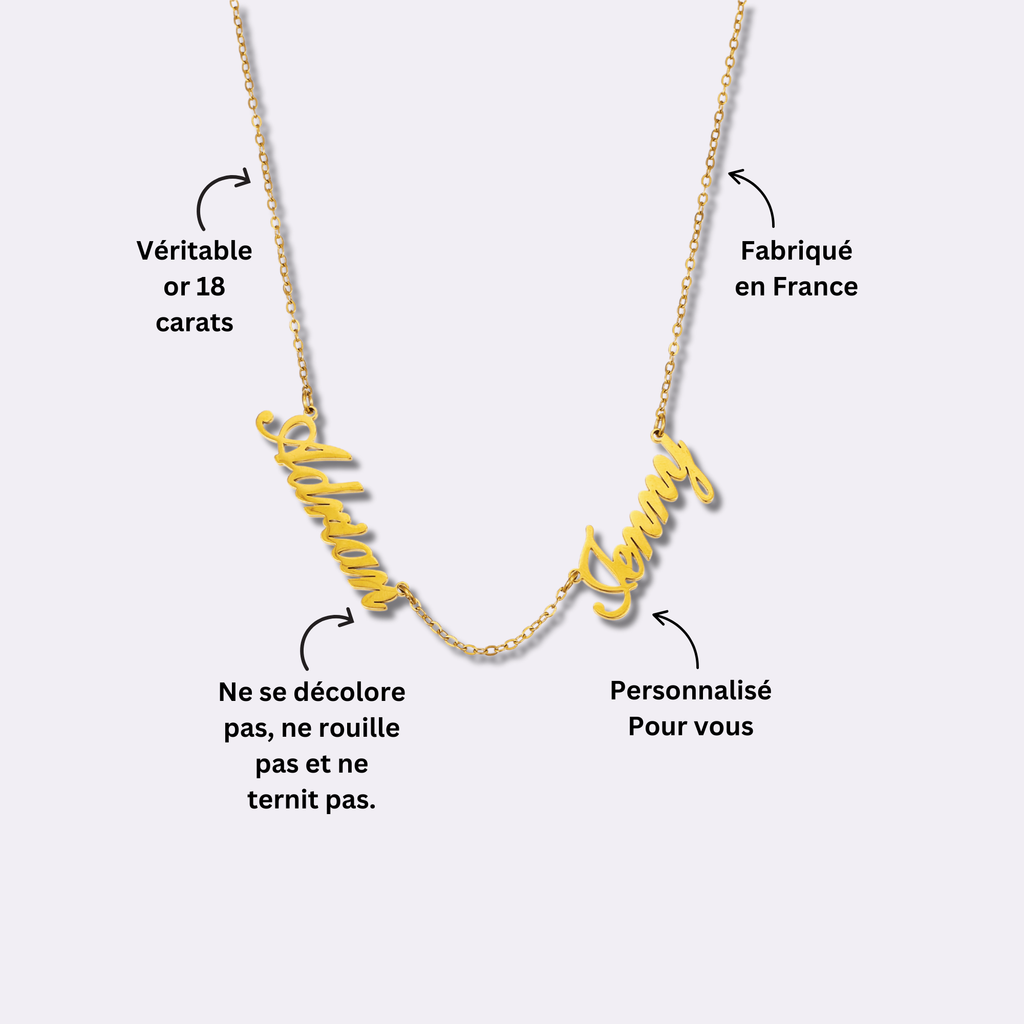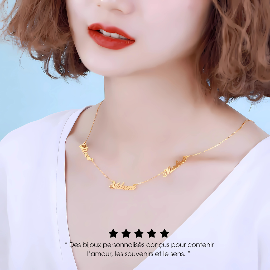 Ajoutez une touche d'élégance et d'individualité à votre style avec notre Collier Personnalisé Multi-Noms pour Femmes. Cette pièce magnifiquement conçue vous permet de célébrer votre identité unique ou des relations chères en affichant plusieurs noms ou mots de votre choix. Idéal pour les occasions spéciales ou le port quotidien, c’est un ajout subtil mais significatif à toute collection de bijoux.